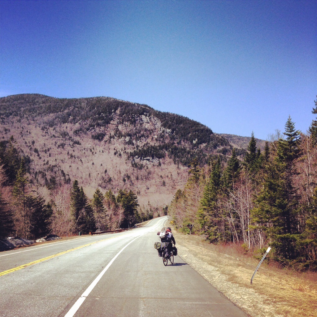Nous sommes donc parti soucieux, échaudés par l’expérience de la veille. les premiers kilomètres nous mettent en confiance : c’est du plat, il fait soleil et environ 15 degrés. Les choses sérieuses ne tardent pas à arriver : un nouveau col à franchir. Toutefois, rien à voir avec celui de la veille. D’après un local que nous croisons avant de commencer l’ascension, il n’y aurait que 5 km à grimper (contre 25 la journée d’avant) et ensuite nous aurions 20 Km de descente…. En effet, après cet effort de 5km, nous serions sur une route redescendant dans les vallées du Vermont.