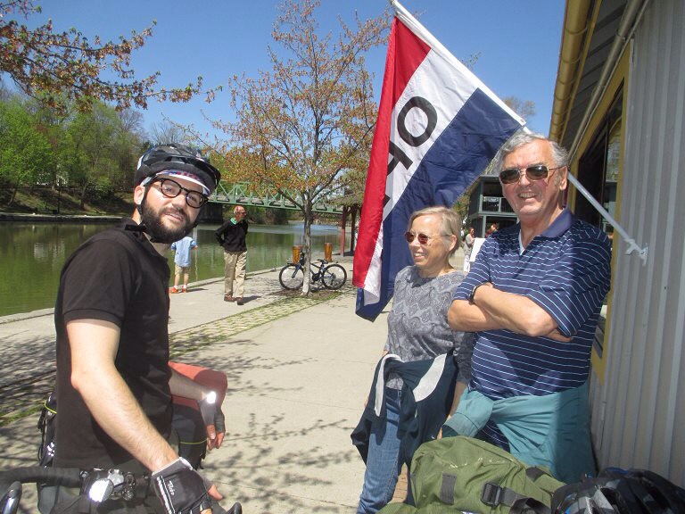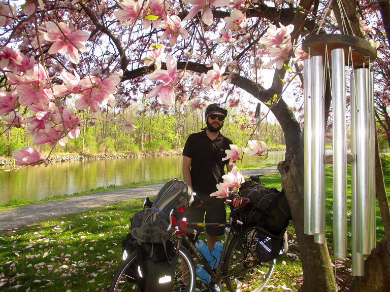 Un peu plus loin, hors de Rochester, nous prenons un café le long du canal, dans un petit village très animé en cette belle journée de printemps. Il y a du monde sur les berges : certains courent, d’autres font du vélo, mangent une glace ou prennent un verre. C’est à ce moment là que surgit Terry qui commence à nous faire la conversation. Terry est un homme très cultivé et passionné de politique. Il a longtemps fait pousser du cannabis en grosse quantité dans son appartement jusqu’au jour où la police a débarqué chez lui et l’a arrêté. Encore une rencontre inattendue et enrichissante, d’autant que si nous n’avions pas su ou passer la nuit, Terry nous avait proposé de rester chez lui.