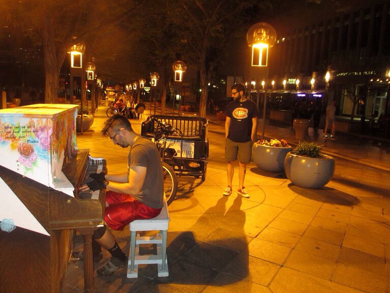 Contrairement a la plupart des grandes métropoles américaine, il y a un centre ville avec une rue piétonne où l’on trouve des restaurants, des bars, des cafés, des magasins, des gens qui jouent de la musique, des spectacles de rue… Cela ressemble fortement aux centres ville européens. Il y a une âme â Denver et cela gagne à être connu.