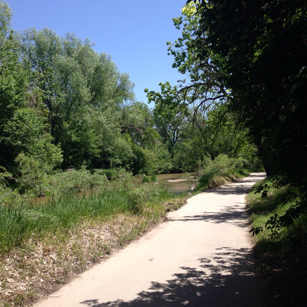 La première heure de route est très agréable, on suit une piste cyclable le long d’une rivière qui traverse la ville. Le reste se complique. Sortir de Denver est un véritable casse tête : aucune indication, très peu de petites routes, pratiquement que des 4 ou 6 vois très fréquentées. Le confort du Sheraton est maintenant bien loin : gaz d’échappement, 30 degrés, un soleil de plomb, des coups de Klaxon, des voitures qui roules à 100 Km/h à 50 cm de nous… L’enfer du cycliste !
