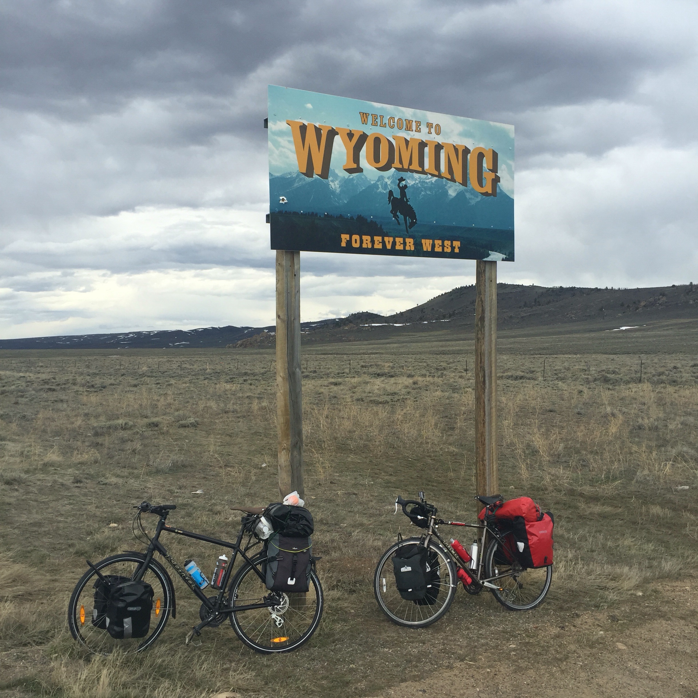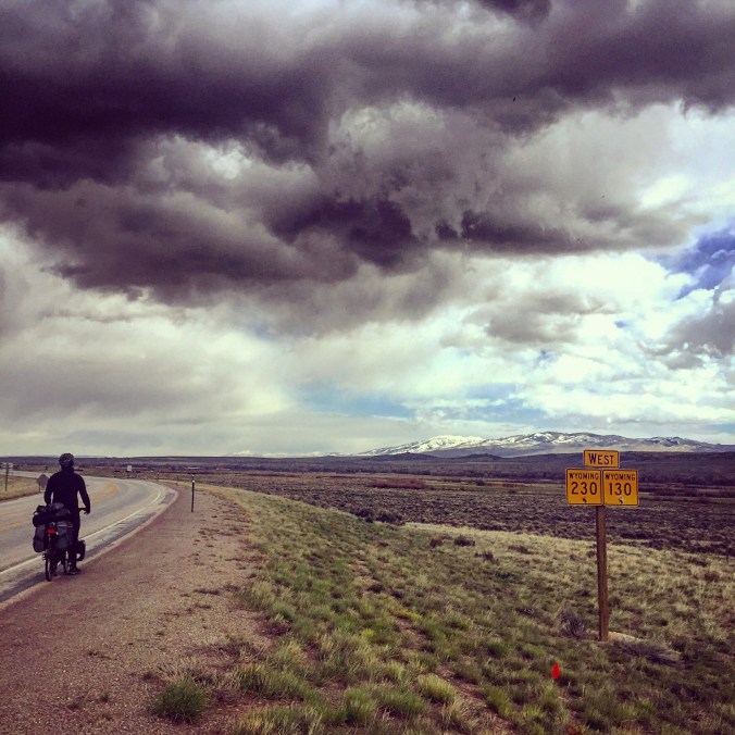 Effectivement, on ne sent pas passer les 20 premiers miles. Le vent dans le dos nous porte, on a l’impression de voler. Nous passons par la même occasion la frontière entre le Colorado et le Wyoming et arrivons rapidement au lieu où nous avions prévu de