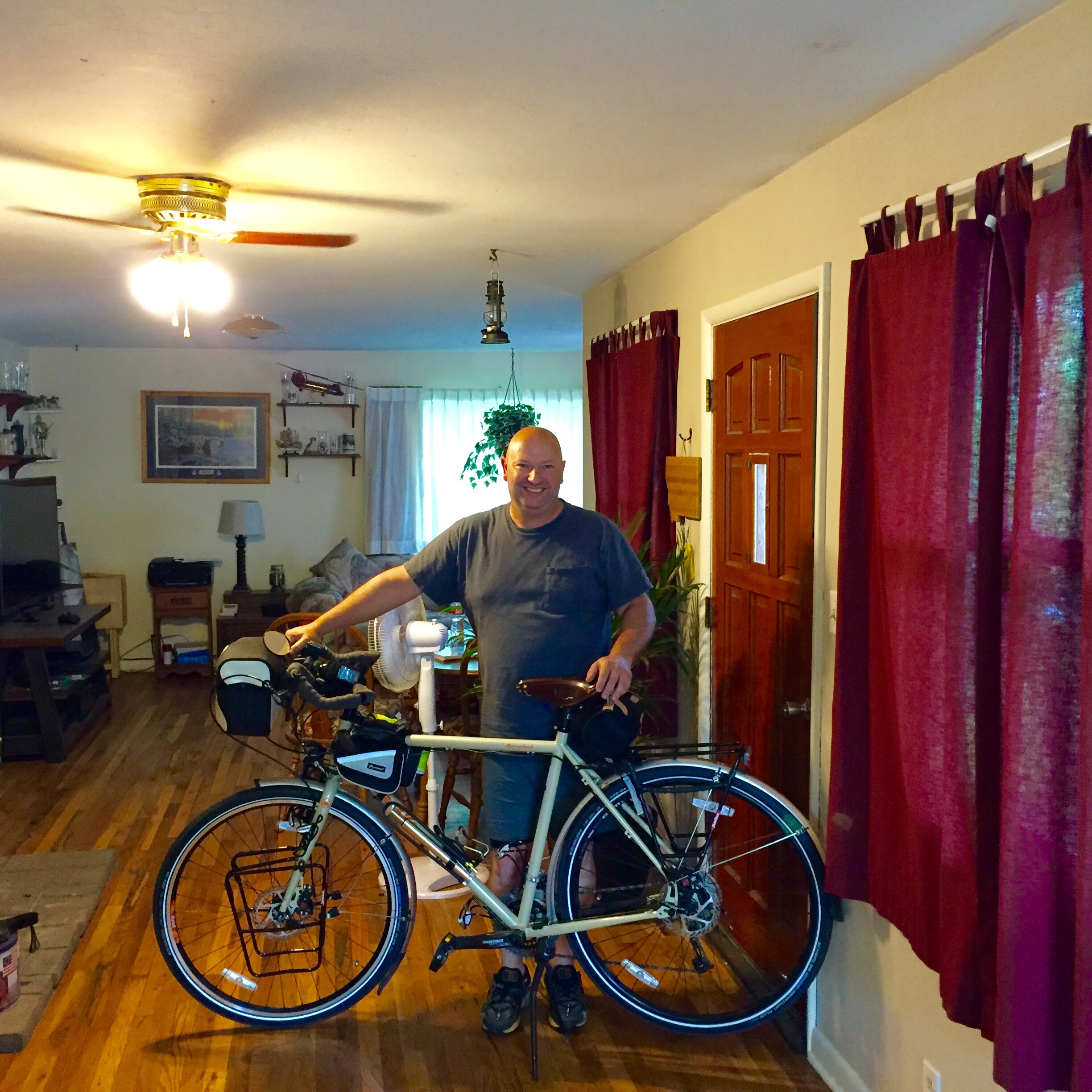 Curtis et son vélo avec lequel il parcourera l’Europe