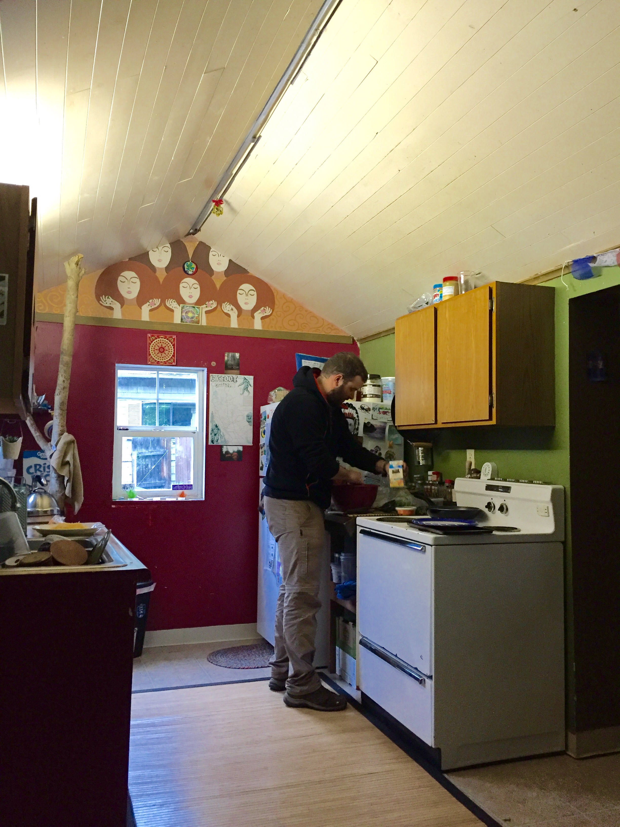 Chef Ben, meilleur ouvrier de Missoula, préparant des crèpes aux champignons pour nos hôtes