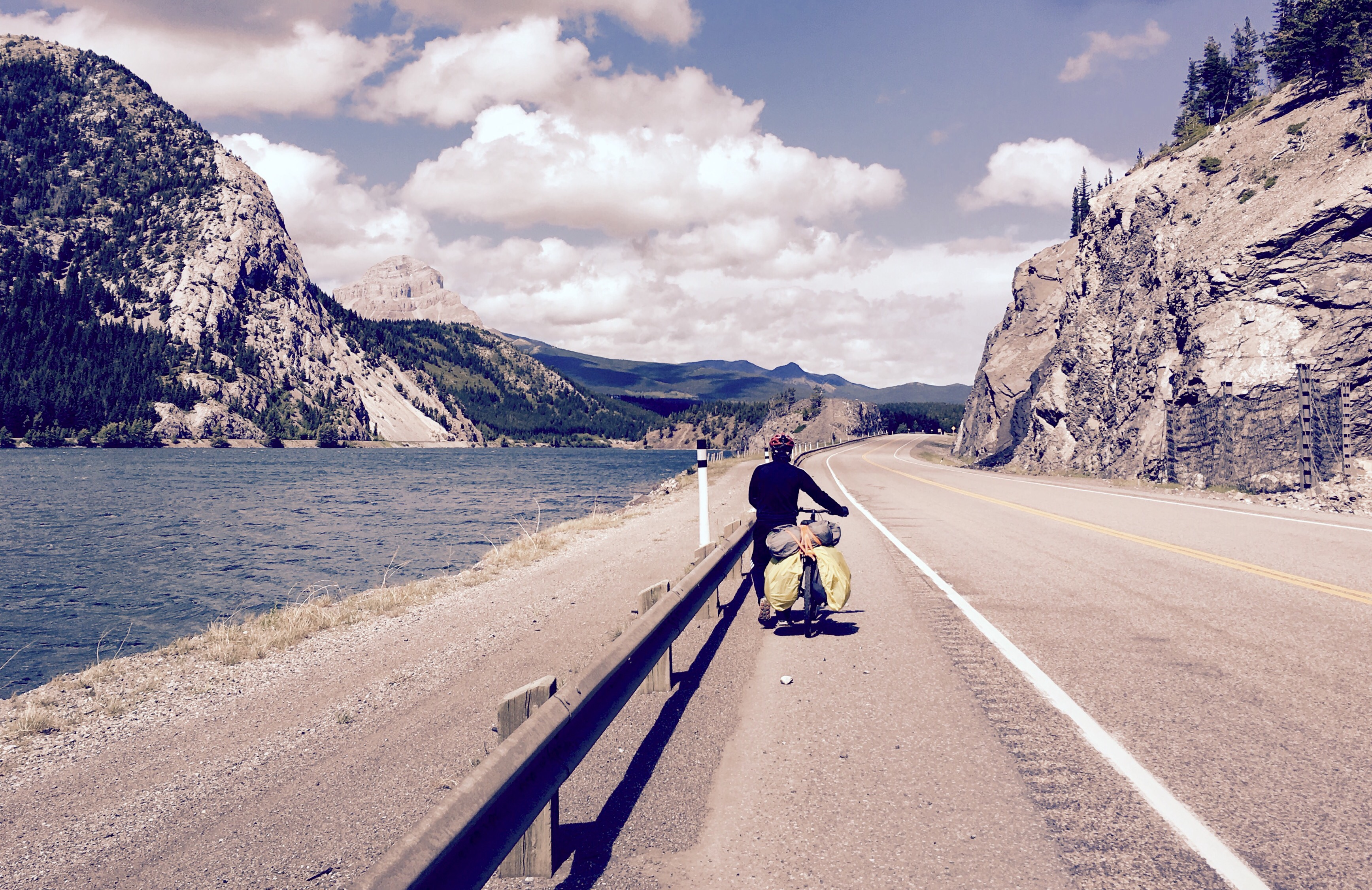 Et puis, comme si le sort prenait pitié de nous, les nuages se dissipent progressivement, laissant le soleil apparaître. Le vent souffle même dans notre dos, nous permettant d’avancer à une allure rarement égalée lors de ce voyage. La Colombie Britannique semble finalement souhaiter la bienvenue à nos deux comparses et la journée prend une nouvelle tournure.