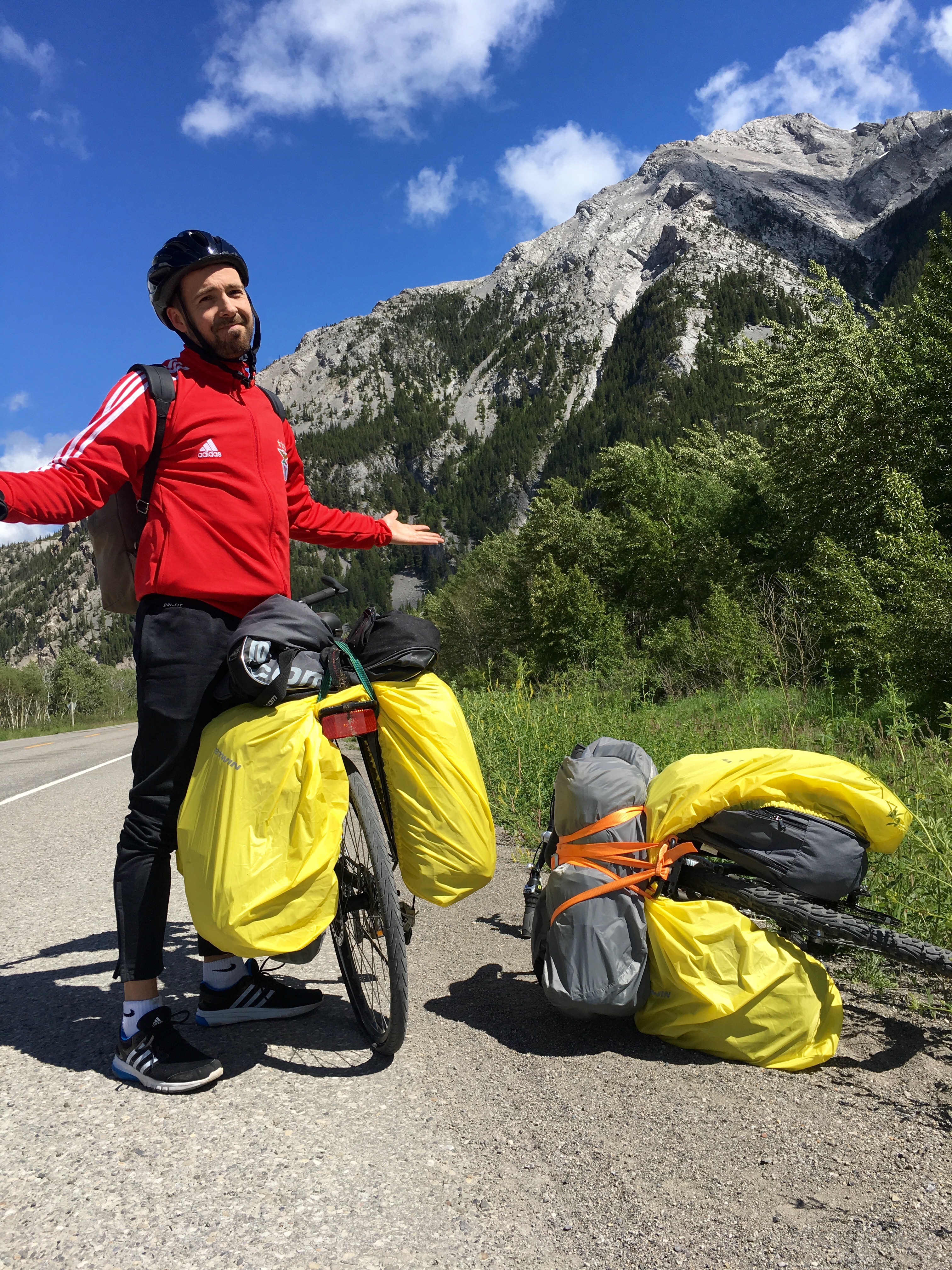 Les quatre vélos chargés à l’arrière, nous voilà parti direction Canmore, petite ville plus au nord. Très rapidement le décor change, des paysages montagneux nous passons aux immenses plaines arides parsemées de puits de pétrole qui nous rappellent le Wyoming. Les locaux ont également le « look Wyoming »: Chapeau de cowboy, chemise à carreau et jean’s Wrangler sont de rigueur.