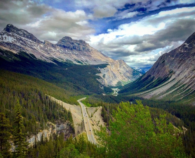 Effectivement cette journée entre dans le cercle très fermé des étapes magiques du voyage. Une de celles qui vous font oublier tout le reste et vous rappellent pourquoi vous êtes partis. Les merveilles de la nature s’enchaînent, toutes plus majestueuses et époustouflantes les une que les autres. Lorsqu’on pense avoir atteint le summum du grandiose, dix kilomètres plus loin un paysage vient placer la barre encore plus haute. Je dois même le reconnaître, l’ouest Canadien gagne face à ses voisins du sud. Pas par KO certes, par décision partagée des juges, mais tout de même.