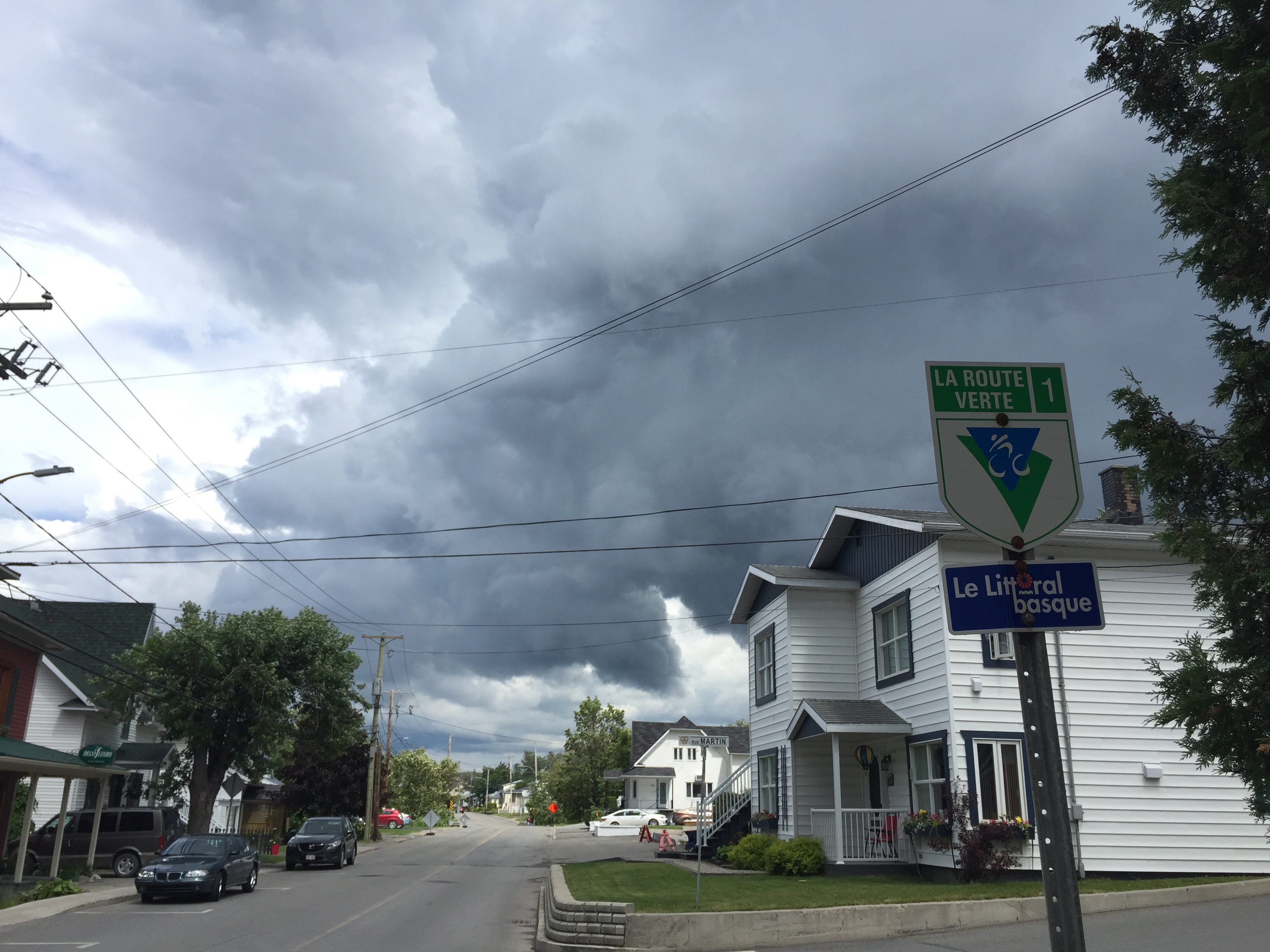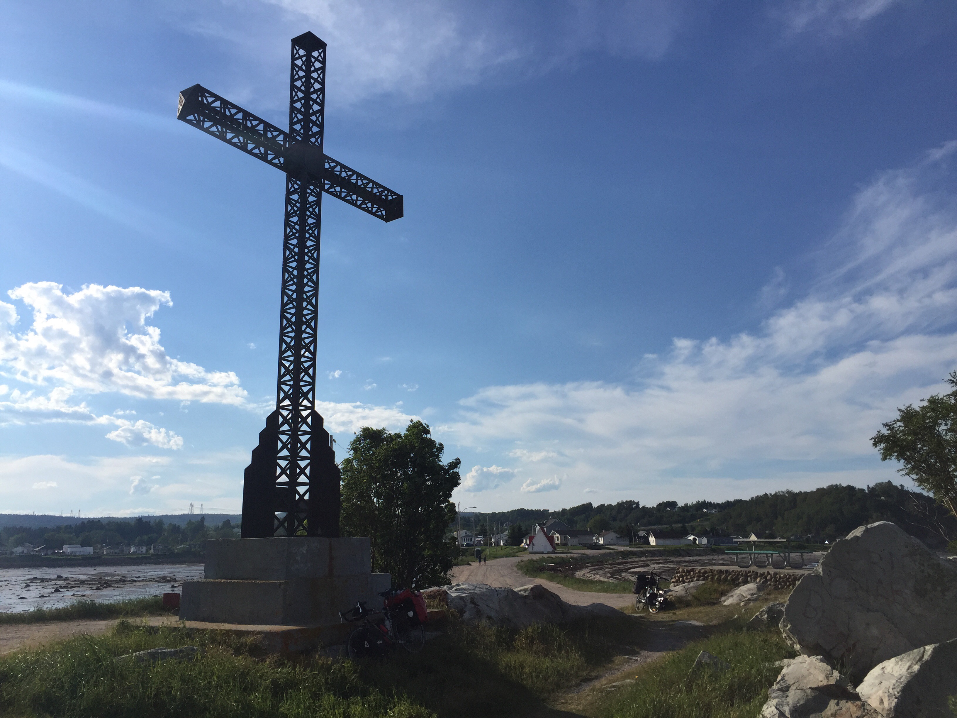 Nous empruntons l’itinéraire cyclable qui nous fait longer la côte jusqu’à la ville de Rimouski. Cet itinéraire est surnommé « route du littoral Basque ». En quittant les Rocheuses, on aurait pu penser que le plus facile était à venir. Manifestement ce « littoral basque » n’a pas entendu parler de nous et souhaite mettre notre réputation acquise dans l’ouest à l’épreuve. Qu’il en soit ainsi, nous remettons notre ceinture en jeu ! 12, 14, 15 et même 16%… Ce n’est pas le degré d’alcool des bières du coin, mais bien l’inclinaison des pentes que nous avons à franchir. Des rampes d’une centaine de mètres chacune qui s’enchaîne sans répit. Un enfer !