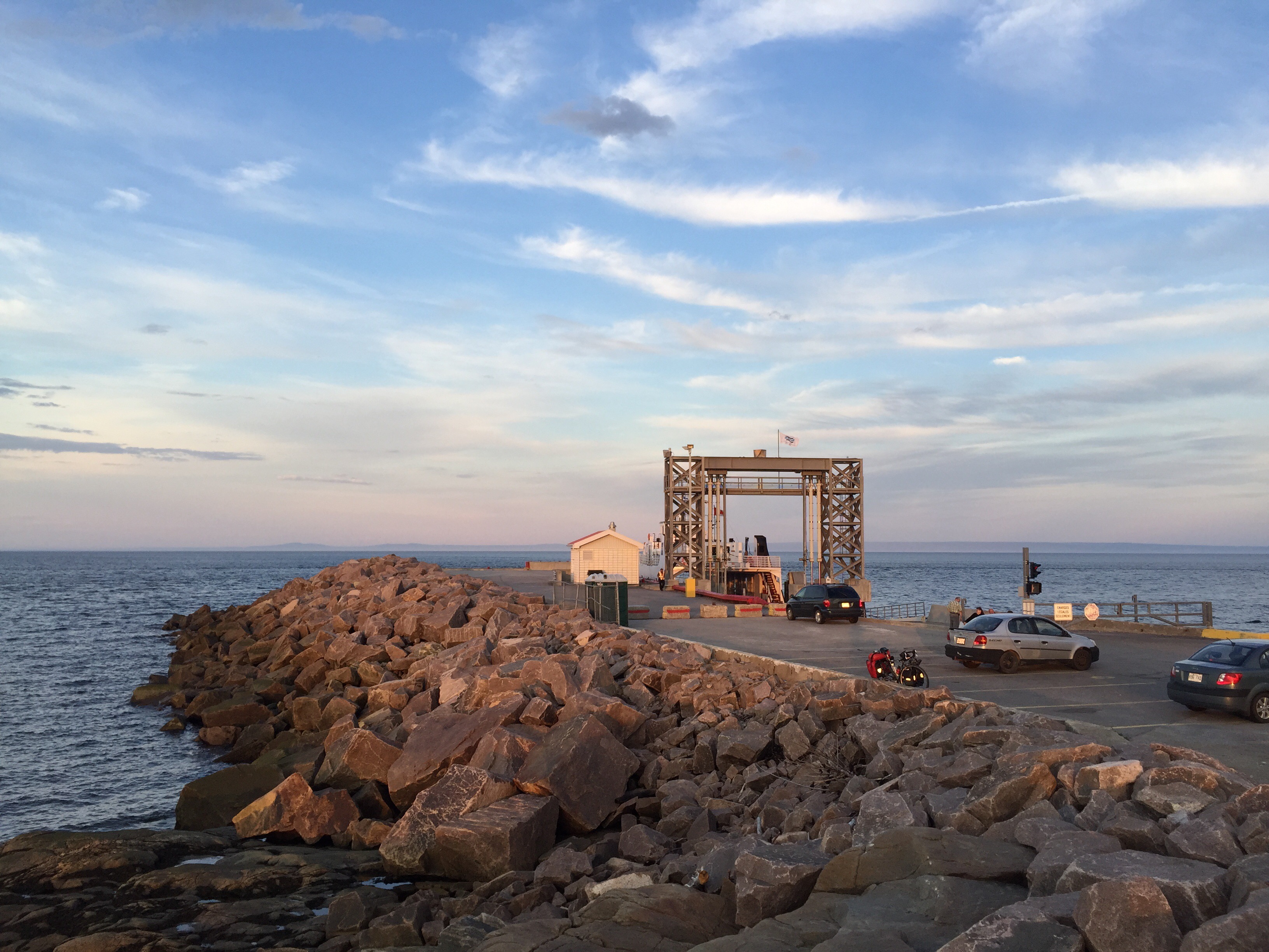 Nous arrivons au traversier vers 15:00. Nous sommes le premier juillet, jour de la fête du Canada. Bien qu’au bar de Tadoussac « on ne fête pas trop cette affaire là nous autres », il n’en reste pas moins une journée fériée et le service est réduit. Le prochain bateau part à 20:30. Avec cinq heures devant nous, nous décidons d’aller se rafraîchir dans un bar des environs.