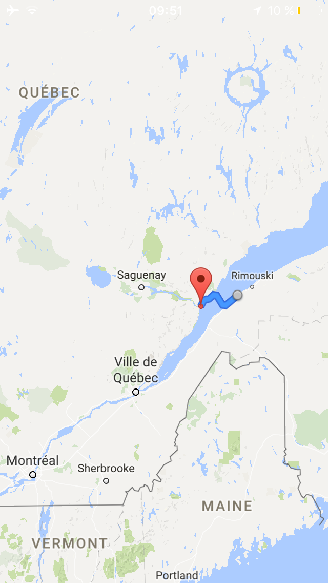 Nous ne parvenons pas à gagner Rimouski. Épuisés, les jambes carbonisées nous passons la nuit à une trentaine de kilomètre de là.