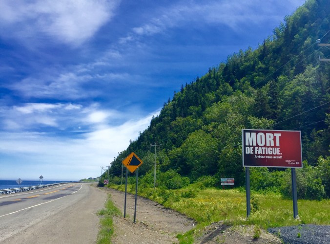 Les autochtones que nous croisons font un signe de la main ou klaxonnent pour nous encourager. Comme s’ils saluaient les deux inconscients qui s’apprêtent à défier l’ogre de haute Gaspésie.