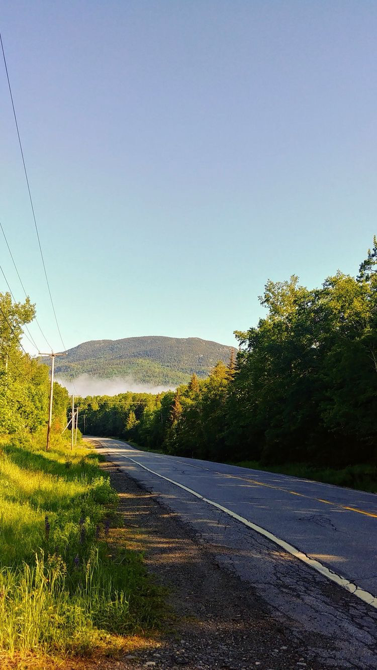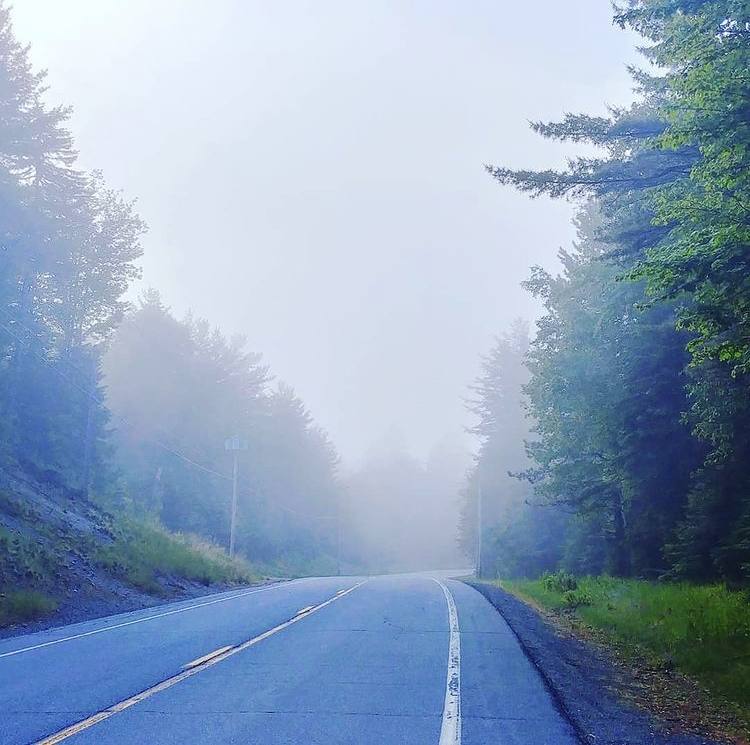 Si du côté québécois je n’ai jamais vraiment eu l’impression d’être loin de la civilisation, le passage frontalier change cela: fini les lignes droites interminables, la route est désormais sinueuse, épousant les contours des lacs et des montagnes, traversant de sombres forêts de résineux. Les arbres, semblent se pencher les uns vers les autres, ténébreux et inquiétants. Pas une voiture, pas une maison, pas le moindre signe de présence humaine, c’est le règne du silence et de la solitude, un monde figé, c’est l’immensité sauvage des forêts du Maine, c’est ce pourquoi je suis ici.