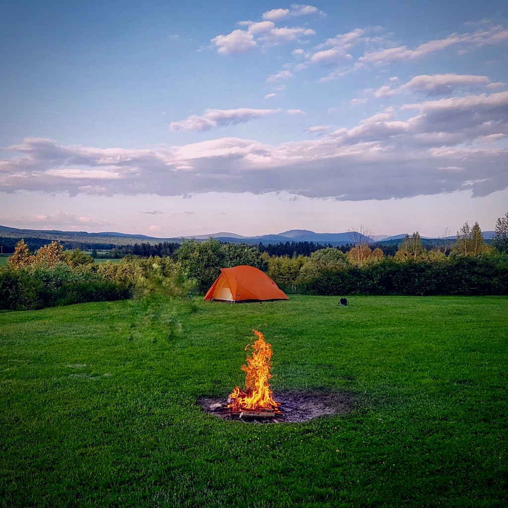 Alors que je termine mon installation, les voisins arrivent. Denis prépare un feu au bord duquel nous passons le reste de la soirée tous ensemble. Nous parlons de choses et d’autres, de l’histoire du Québec, de leur région qui se dépeuple… Ils tentent d’ailleurs de me convaincre d’acheter une maison dans le coin, me ventant la qualité de la vie. Ils finissent même par m’avouer: « habituellement on n’aime pas trop les français, mais toi tu es bien sympathique ». Je me suis demandé s’ils en voyaient souvent des français dans ce coin reculé. Les derniers à être venu par ici devaient probablement être leurs propre ancêtres il y a 300 ans. Qu’importe, je prends cela pour un compliment.